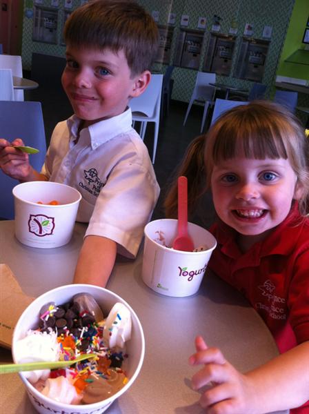 Kids_YogurtLand.JPG - Yogurt time w/ Daddy...  Yes, there's "some" yogurt in there?!...