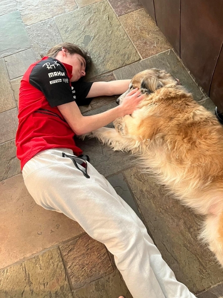 Alex_WeekWithMoose_2022-12 (1).JPG - Alex - Moose cuddles before heading back to late nights and little sleep