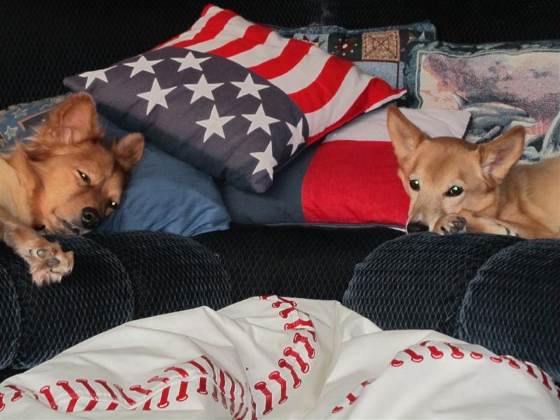 Mutts.JPG - Our puppies chillin' out!  Tough life huh?