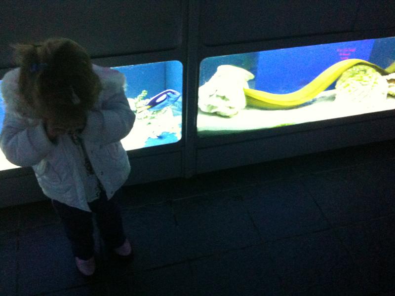 "Hey Jess, stand next to the big eel!"... "No Daddy. I don' wan' to!... " :o( Download